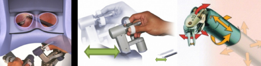③実際の手の動きを最大5:1まで縮尺して鉗子を動かすことによる繊細な動作が可能になります。