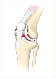 しかし、加齢などによりクッションが磨り減ったり傷ついたりすると、大腿骨(太ももの骨)と脛骨(すねの骨)がこすれあって、痛みや運動障害を招く病気、変形性関節症となります