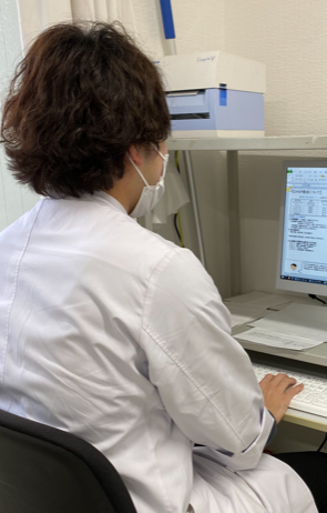 薬剤科にはがん治療に精通する薬剤師が3名(がん薬物療法認定薬剤師1名、外来がん治療認定薬剤師2名、2022年4月現在)在籍しており、医師や看護師など他のスタッフと連携して患者さんの抗がん剤治療に携わっています。