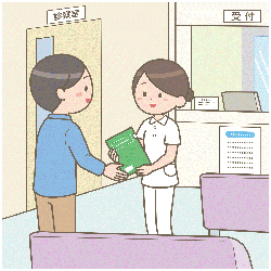 1. メディカルプラザで受付します。検査がある場合は診察の1時間前にご来院ください。受付は8時20分からとなります。