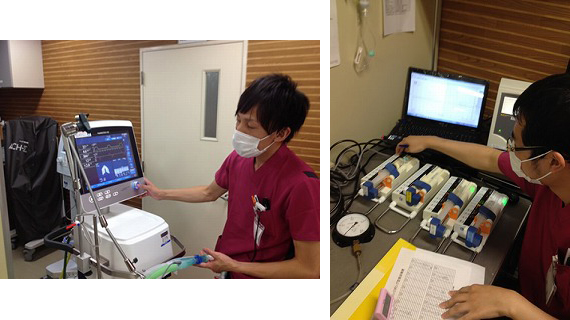 当院ME室では、生命維持管理装置を始め様々な医療機器の操作及び保守管理を行っています。