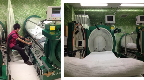 当院では積極的に高気圧酸素療法を行っていて1型の機器を2台所有しています。