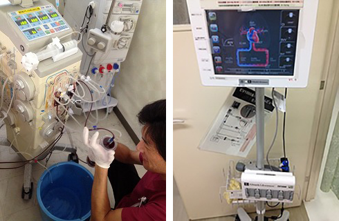 現在、個人用RO装置でのHDは同時に4台まで治療を行えます。