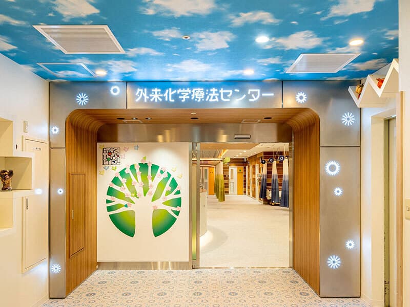 外来化学療法室では「安全・安楽・確実」に外来通院されているがん患者さんに薬物療法を提供できるよう努めています。投与管理、治療中の副作用への対応だけでなく、専門の薬剤師からの薬剤指導や、看護師から精神的なサポートや、生活面での困りごとへの対処方法の提案。