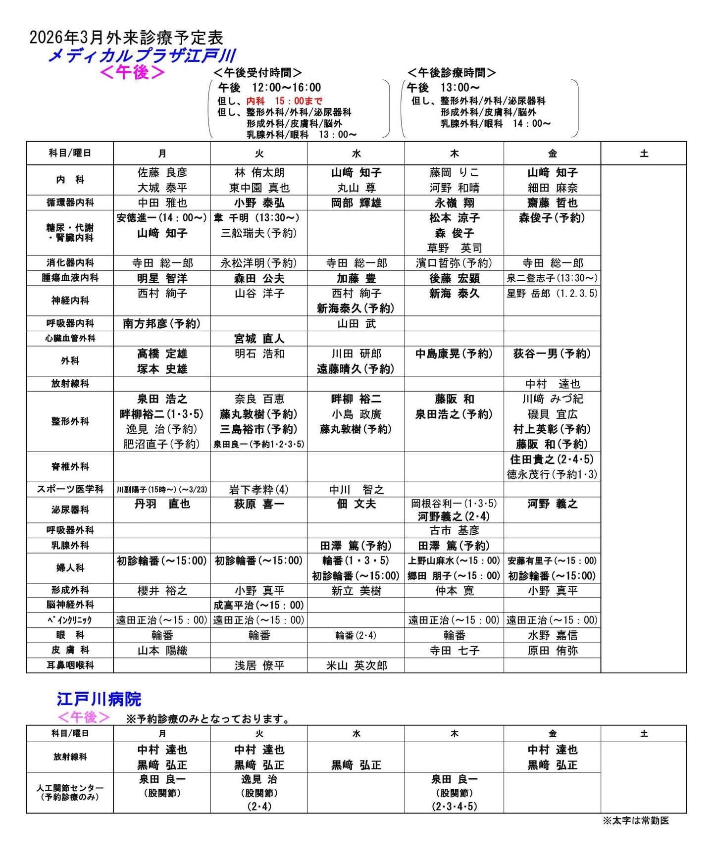 ※予約診につきましてはお手数ですが事前にご連絡をいただき調整の上ご来院下さい。 ※一部診療科では事前予約を承っておりません。