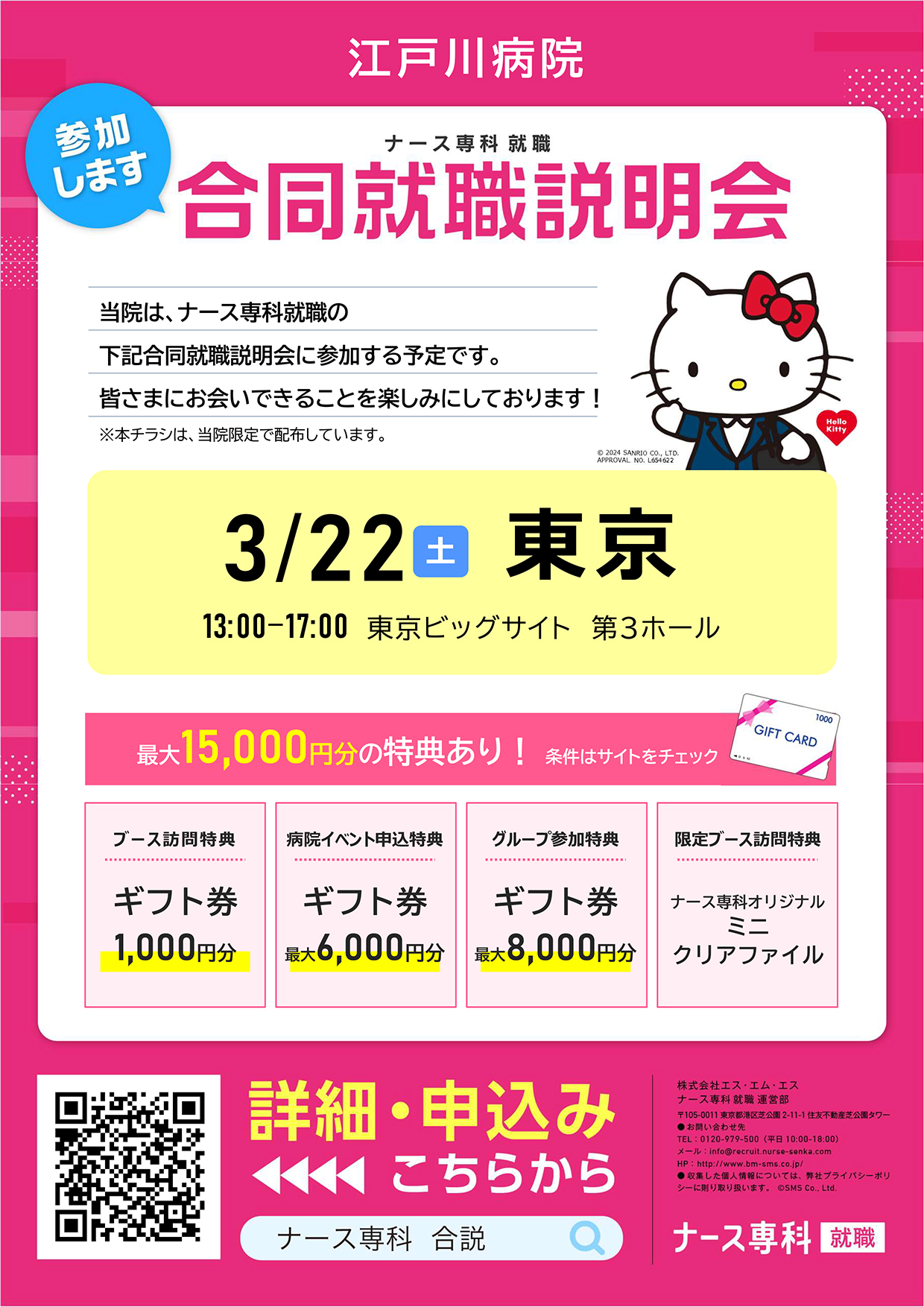 3月22日(土)東京ビックサイトで行われる、ナース専科主催の合同就職説明会に参加いたします。
