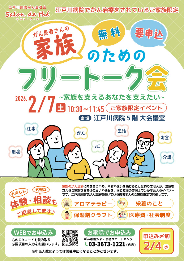 急遽 2026年2月7日(土)、がん患者さんのご家族限定イベントを開催します!